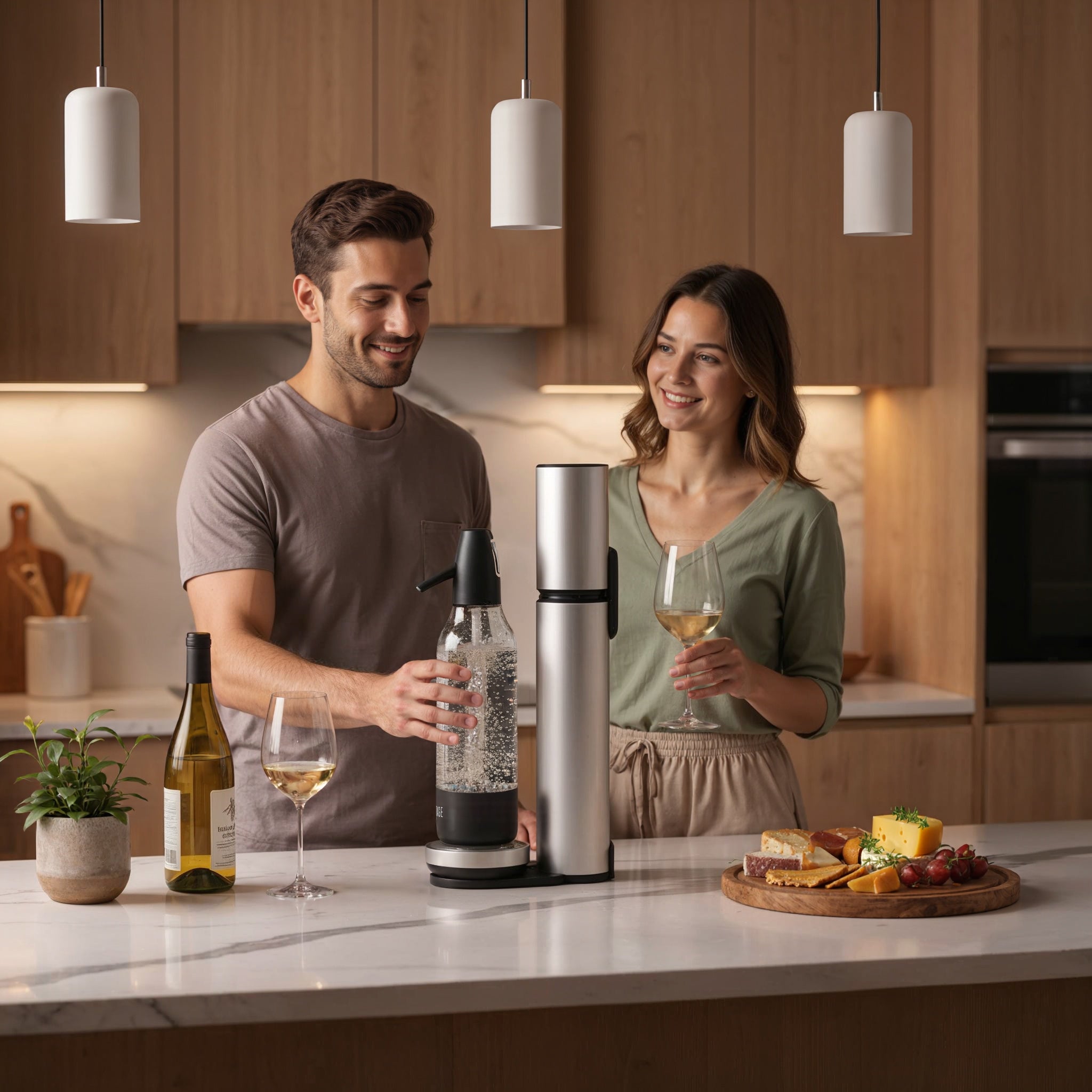 A precíz nyomáskiegyenlítés miatt nem habzik túl az ital, így: víz, szörp, gyümölcslé, bor, koktélalap – mind buborékosítható. Ez nem csak szóda.